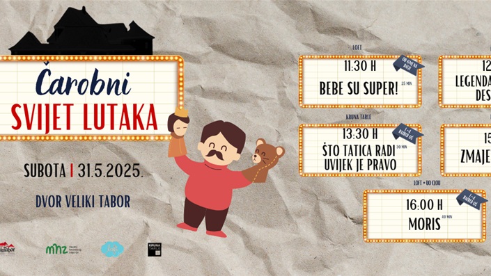 U subotu, 31. svibnja, mališani i njihove obitelji imat će priliku zakoračiti u Čarobni svijet lutaka u Dvoru Veliki Tabor u Desiniću – bogat cjelodnevni program lutkarskih predstava koje donose Kruna Tarle i suradnici, kazališne skupine LOFT, UO Clou i Ioculatori.