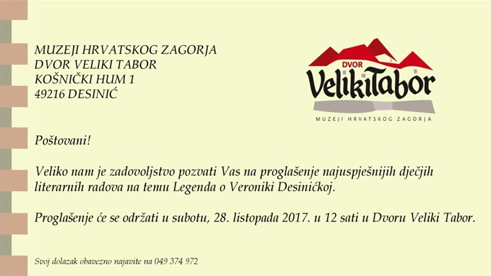 Na svečanosti dodjele nagrada djeci će biti predstavljena i nova muzejsko-edukativna radionica čija je tema, također, Legenda o Veroniki Desinićkoj.