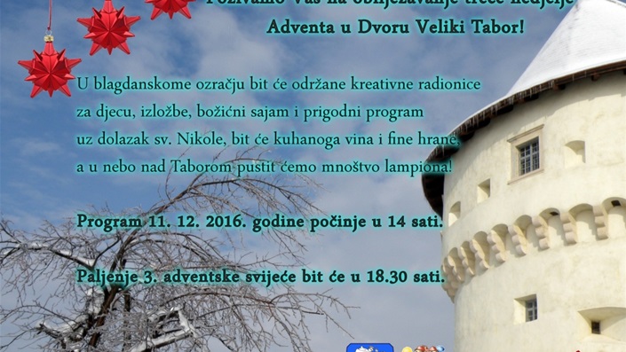 Pozivamo Vas na obilježavanje treće nedjelje Adventa u Dvoru Veliki Tabor, 11.12.2016.