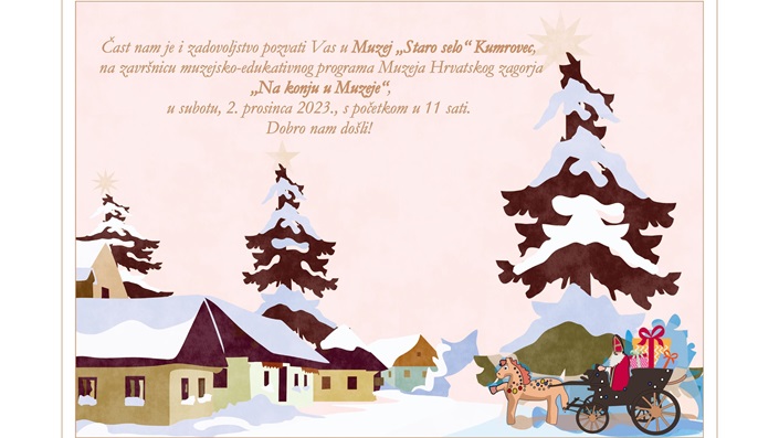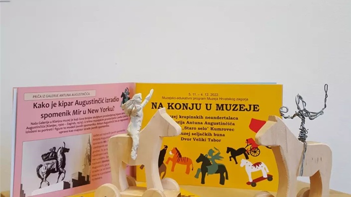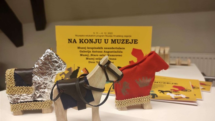 Oduševljeni djeca i roditelji na završnici prošlogodišnjeg programa potaknuli su muzejske pedagoginje Dvora Veliki Tabor, Galerije Antuna Augustinčića, Muzeja krapinskih neandertalaca, Muzeja seljačkih buna i Muzeja „Staro selo“ Kumrovec da i ove kasne jeseni organiziraju radionice i druženja u jedinstvenom programu nazvanom „Na konju u Muzeje“. Program kojemu je KONJ glavna tema, održavat će se tijekom pet vikenda, od 28. listopada do 2. prosinca 2023. godine, a namijenjen je individualnim posjetiteljima te obiteljima s djecom.