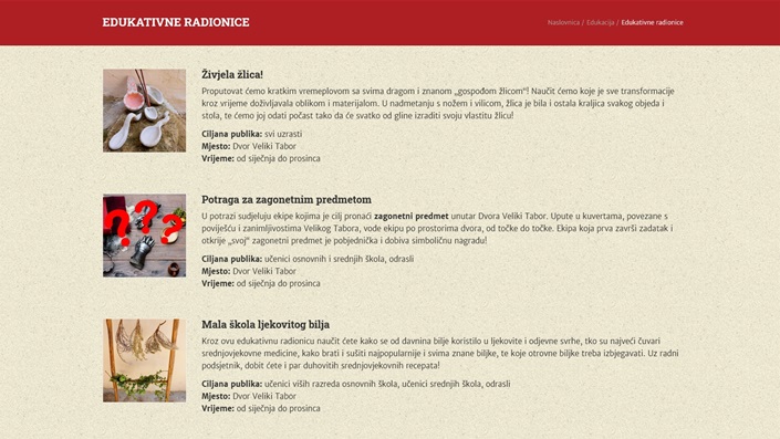 Više o novim edukativnim radionicama saznajte na http://www.veliki-tabor.hr/edukativne-radionice
