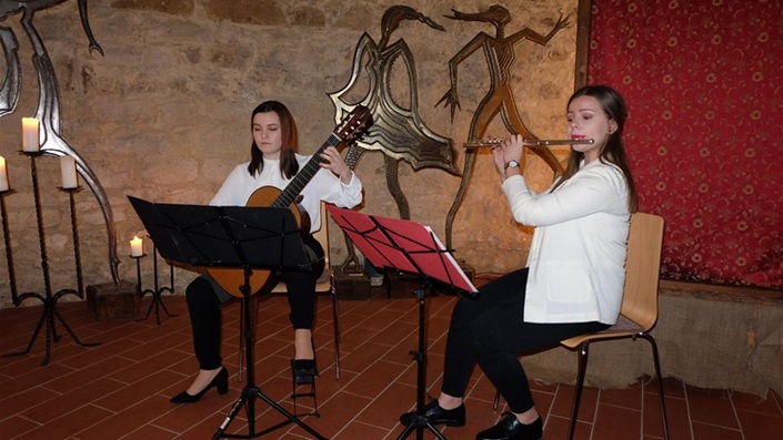 U petak, 31. siječnja u brojnim muzejima diljem Hrvatske održana je manifestacija Noć muzeja u koju se i ove godine uključio Dvor Veliki Tabor s raznolikom i bogatim programom. Punom Rustikalnom dvoranom odjekivale su melodije Mozarta, Čajkovskog i drugih istaknutih skladatelja u izvedbi gitarističko-flautističkog dua Ostinato kojeg čine Gabriela Nežmahen i Veronika Barlović, učenice 4. razreda srednje glazbene škole u Pregradi.