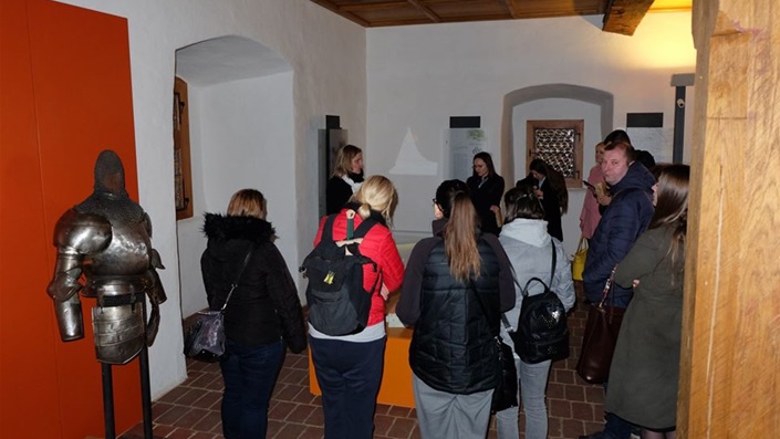 U drugom dijelu programa, održana je edukativna radionica S mačem u ruci, na kojoj su sudjelovali posjetitelji svih uzrasta i tako upotpunili svoje znanje o hladnom oružju, viteštvu i srednjovjekovnom ratovanju. A s aktualnim izložbama posjetitelje je u organiziranom stručnom vodstvu upoznala muzejska tehničarka Nives Ćurković.