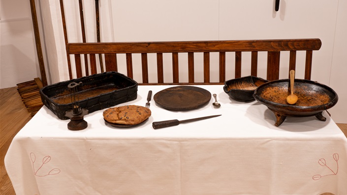 Na samom početku svečanosti, voditeljica Dvora Veliki Tabor, Nadica Jagarčec pozdravila je sve okupljene, nakon čega im se obratila autorica izložbe Renata Dečman koja je predstavila izložbu te zahvalila brojnim institucijama i osobama koje su omogućile ili pridonijele njenom realiziranju u Velikom Taboru. Dečman je posjetitelje upoznala s Etnografskom zbirkom Dvora Veliki Tabor koja trenutno broji 512 predmeta, od kojih je na izložbi predstavljen izbor od 133 eksponata. Objasnila je kako se radi o predmetima tradicijskog seoskog domaćinstva te seoskog gospodarstva s područja Hrvatskog zagorja, ponajprije iz desinićkog i pregradskog kraja koji su nastali krajem 19. i tijekom 20. stoljeća. Posjetitelji su razgledali brojne lončarske proizvode, predmete kućnog inventara, te tradicijskog gospodarstva. Manjim dijelom na izložbi su zastupljeni predmeti vezani uz tradicijske obrte te alatke i pomagala za proizvodnju tekstila. Dečman je istaknula kako se u Etnografskoj zbirci nalazi samo par komada namještaja i svega tri tekstilna predmeta, a iz navedene skupine predmeta posjetitelji su mogli vidjeti jedan stol i klupu te stolnjak. Također je naglasila kako je jedan od zanimljivijih eksponata pokladna drvena maska košuta koja je vrlo nalik pokladnim maskama iz Međimurja, te da postoji mogućnost da i ona dolazi s tog prostora.