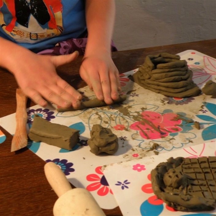 V prvem delu te delavnice se otroci spoznajo s predmeti iz pečene gline – s keramiko, ki so jo uporabljali v vsakodnevnem življenju v dvorcu Veliki Tabor od 15. do 18. stoletja. V tej interaktivni delavnici bodo otroci preko oblikovanja gline tudi sami poskušali izdelati pečenice z motivom vile Meluzine, samoroga ali rozete.