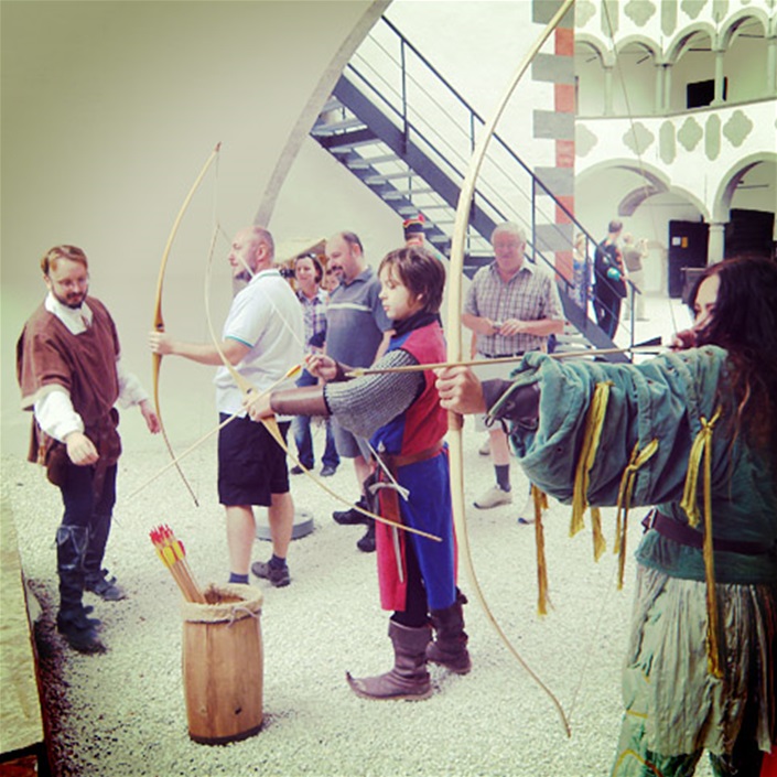 Vitez v kostumu v prvem delu udeležencem predstavi, kako ravnati z lokom in puščico ter kako streljati v tarčo. Po predstavitvi je organizirano tekmovanje vseh sodelujočih in razglasitev zmagovalca, ki dobi tudi pisno priznanje.